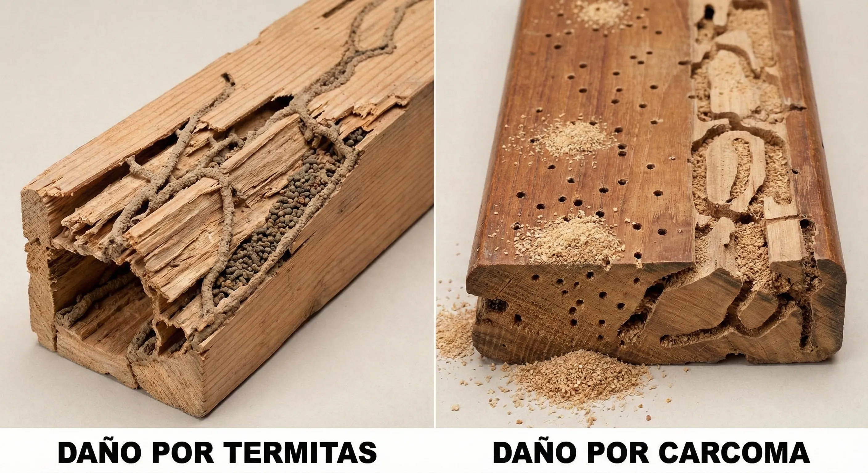 Carcoma vs Termitas: Cómo Distinguirlas y Qué Tratamiento Necesita